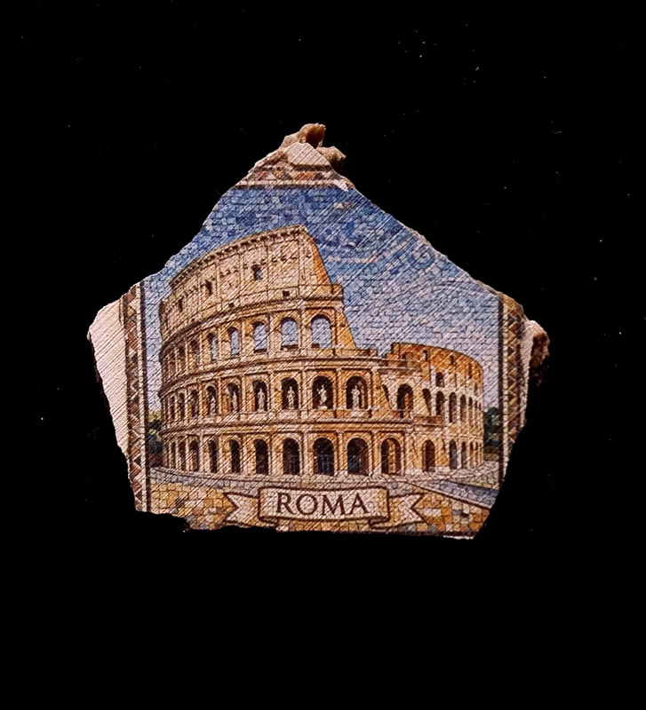 Every model carries the ancient image of the Colosseum colorfoul mosaic, impressed by fine printing that we manually plance on each piece to design the best composition for each peace of stone, giving to each of them its own character.